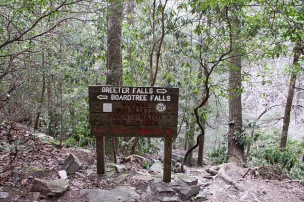 But going left at the trail’s beginning takes a hiking party on the Greeter Falls Loop.