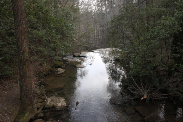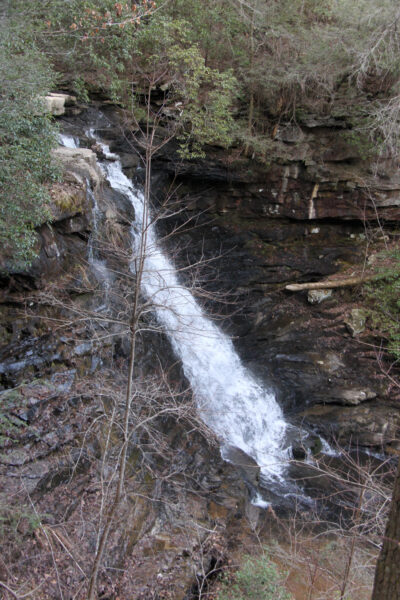 In short order, one can walk right up to an overlook above Upper Greeter Falls. Whoa! It’s straight down. Use caution if you stray off of the trail to get a view of the falls from above.