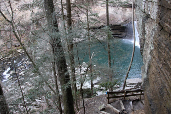 How blue the water in the pool at the base of Lower Greeter Falls appeared on a breezy, mild winter day!