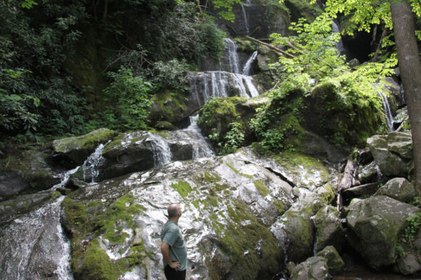Traveling along the Roaring Fork Motor Nature Trail, don’t miss the Place of a Thousand Drips! The 30-foot-tall feature located near the end of the one-way roadway is not exactly well-marked (not marked at all . . .). Passing by, and then deciding to circle back to the waterfall would not be simple, since the road is one-way.
