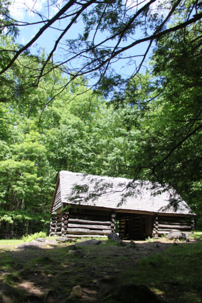 After passing the parking areas for Rainbow Falls, Baskins Creek Falls and Grotto Falls trails, all popular Great Smoky Mountain National Park trails on the Roaring Fork, a few cabin sites sit near the roadway: the Ephraim Bales Cabin, the Alex Cole Cabin at Jim Bales’ Place and the Alfred Regan Place and Gristmill.