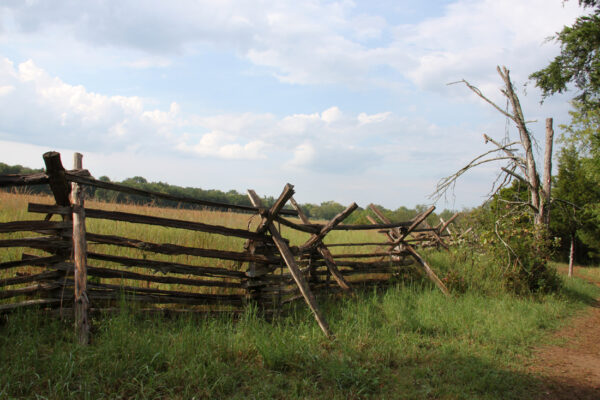 Out on this Battlefield Trail, walkers can see and hear the cars on the highway in the distance but mainly hear only the birds and the bugs.