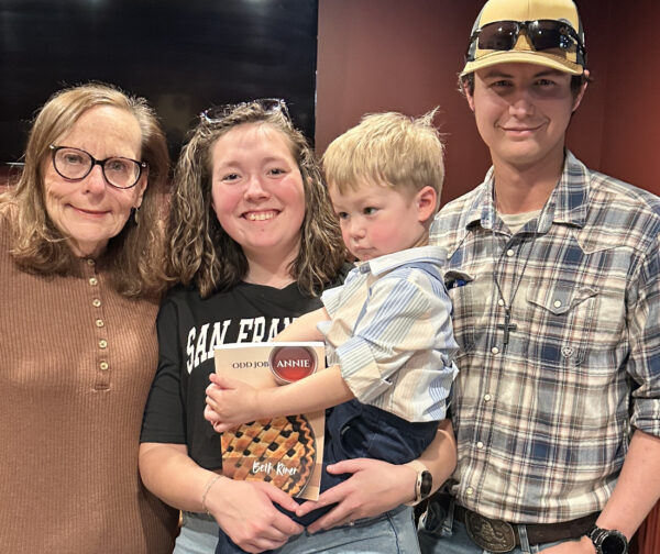 Author Beth Riner, along with Bailee and Austin Ricketts and their son, Barrett, at a March book signing at Dapper Owl; the Ricketts, former students of Riner’s who now live in Christiana, started dating as seniors while at Riverdale, graduating in 2019