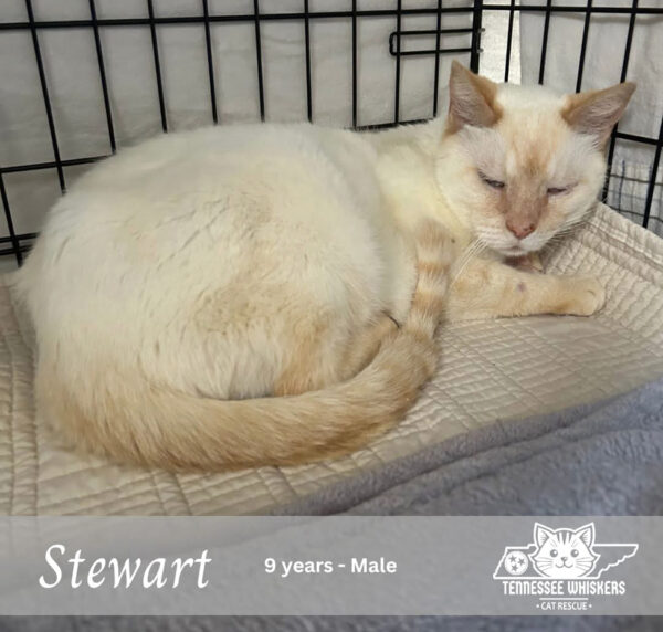 All of these cats have a story. Stewart, a blind 9-year-old cat surviving on the streets near the Murfreesboro Square, required a whole month of patient trapping attempts to get him into safety. He’s adjusting to indoor life now but still awaits a forever home.