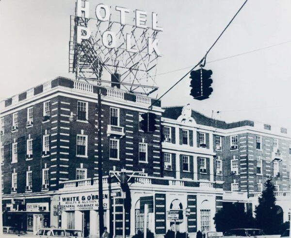 Murfreesboro also at one time had several hotels downtown. You had the Jordan Hotel, which was across from the old City Cafe. Many are familiar with the James K. Polk Hotel, located at the corner of Spring Street and East Main Street, where the Truist Bank building now stands.