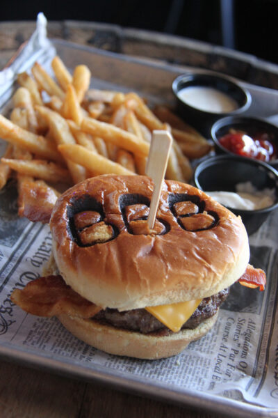 As the name suggests, BBB patrons can find an impressive selection of bourbons and whiskeys and a rotating selection of draft beers, but it’s not only about the drinks here—the corner pub also features a noteworthy food menu.