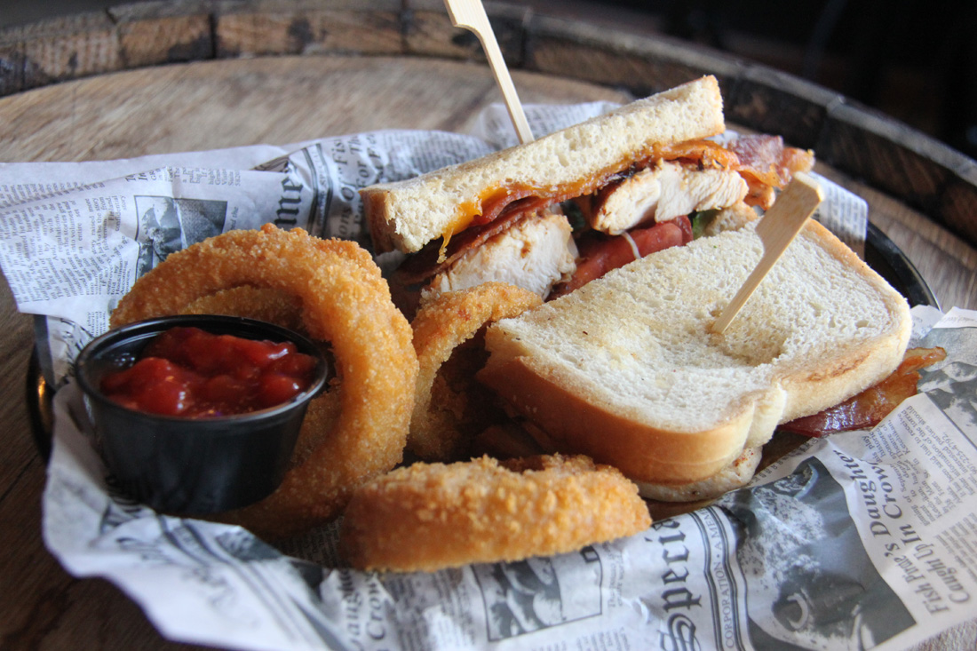 Diners can dig into a range of other comforting pub fare like Philly cheesesteaks, a grilled chicken club sandwich [pictured top], fried green tomatoes or chicken marsala.