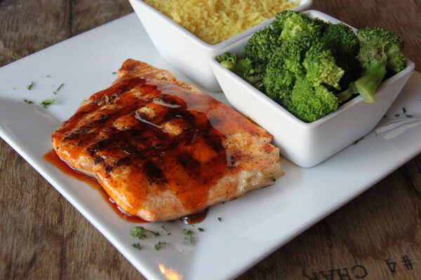 Bourbon glazed salmon with one side: $19; Chicken marsala: $15; Burger and fries: $14; Wings (6): $11; Philly cheesesteak: $13; 8-ounce New York Strip with one side: $20; Fried green tomatoes: $11