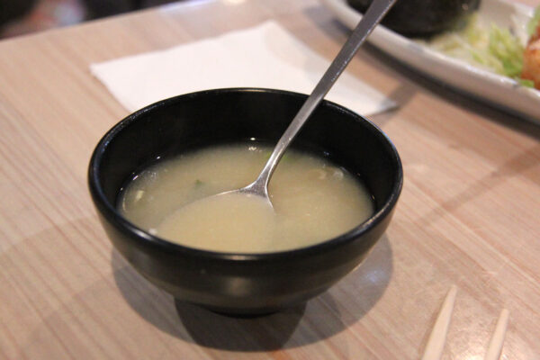 All plates come with miso soup, salad, rice and a side selection (so by the time a table receives everything, there may be dishes all over the place).