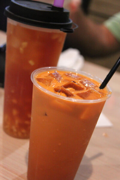Obento offers a selection of fruit teas, including a pineapple tea, containing large chunks of pineapple floating inside.