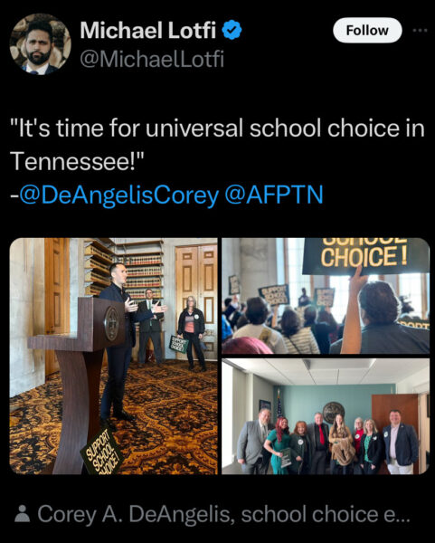 Americans for Prosperity, a Koch Brothers organization, has had a huge lobbying presence not only in Tennessee but across the nation. It was very instrumental in getting the Education Freedom Scholarship Act passed in Tennessee.