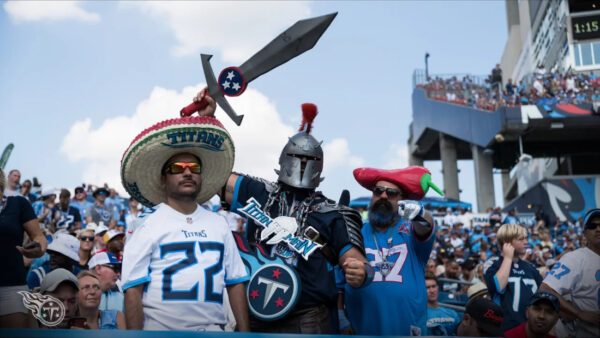 [Titans fans photo by Donald Page; Chimere Dike and Amy Adams Strunk courtesy tennesseetitans.com]