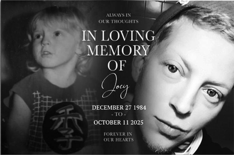 On Oct. 11, 2025, my young nephew, Donald Joseph Stafford, took his own life on the sidewalk in front of the Papa John’s restaurant on Memorial Boulevard in Murfreesboro where he had worked. His co-workers were gathered, watching the drama outside between Joey and one of his managers. That’s when he did it. Joseph, at the age of 40, pulled out a gun and shot himself in the head.