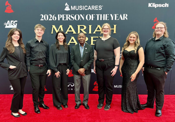 In addition to visits to music locales in Los Angeles, students went behind the scenes at the Crypto.com Arena to get insight into the staging of the telecast, and attended the ceremony itself. On Friday, Jan. 30, they volunteered at the Person of the Year event hosted by MusiCares, the Recording Academy’s charitable entity, honoring multi-Grammy-winning singer-songwriter Mariah Carey.
