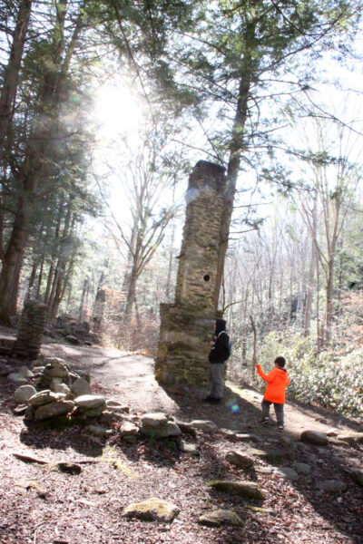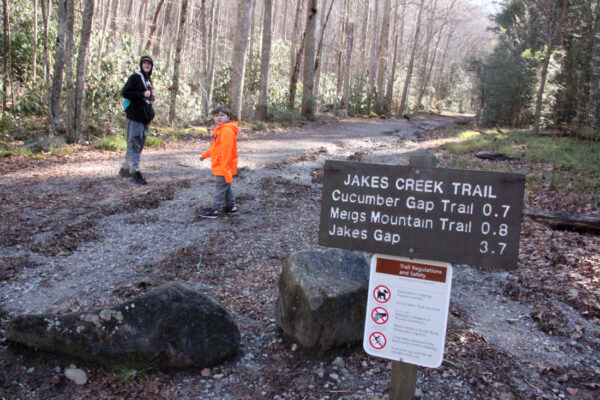 Explorers can access one of the popular hiking routes, the Jakes Gap Trail, at a parking area near the former Elkmont resort village.
