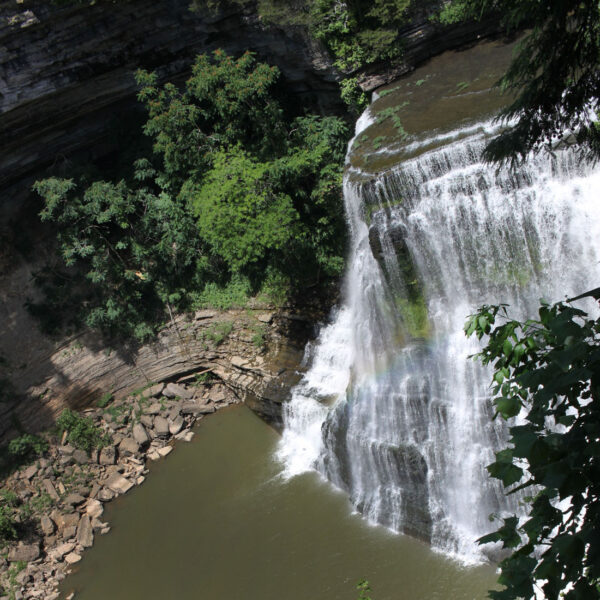 One of the easiest waterfall access points in Middle Tennessee, Rutledge Falls involves a short walk from a roadside parking area. The wide cascade tucked in the shady woods spills into a swimming hole very popular in warmer months. Minimal hiking required, maximum splash potential.