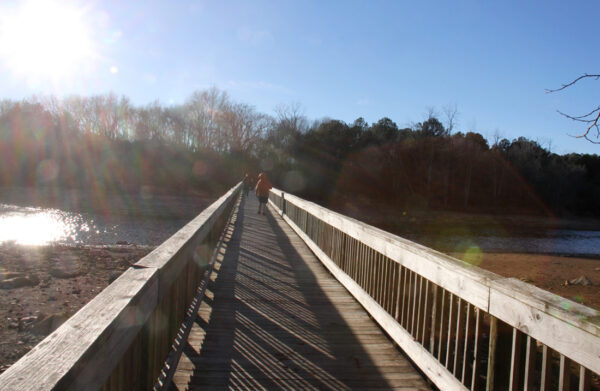 At Long Hunter State Park, Couchville Lake offers a gentle, paved two-mile loop with constant water views. A long pedestrian bridge stretches across the lake, making it stroller-friendly and ideal for casual walkers and joggers. Ducks skim the surface of the lake, turtles sun themselves on logs and the path stays mostly level. It’s one of the easiest “big scenery” payoffs in the greater Nashville area—especially at sunset.