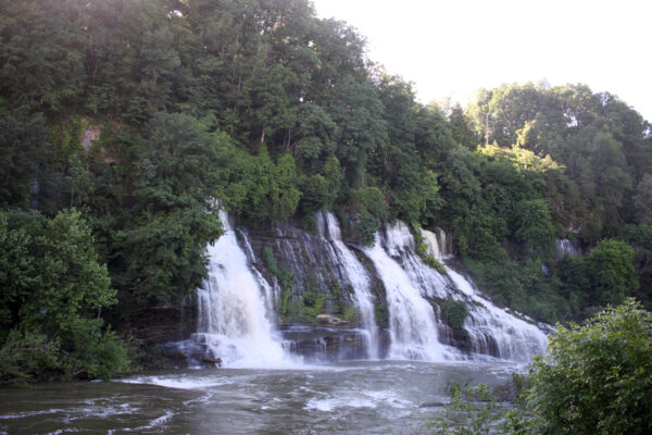 Twin Falls at Rock Island State Park is easily viewed from an overlook just steps from the parking lot off of Power House Road on the north side of the Caney Fork River. The twin cascades spill from a rocky cliffside into the river gorge below. Additional easy riverside walking paths, swimming areas and natural points of interest add to the experience without the demands of strenuous hiking, and Rock Island State Park contains a wealth of other hiking trails, otherwise.