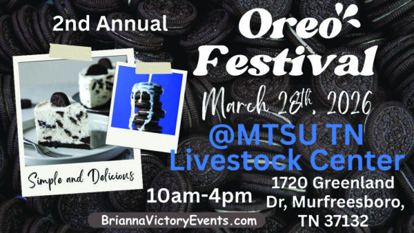 Get ready for a full day packed with Oreo-inspired treats, desserts, drinks and family fun at the 2nd Annual Oreo Festival on Saturday, March 28, from 10 a.m.–4 p.m. at the MTSU TN Livestock Center (1720 Greenland Dr.). From the classics to wild new Oreo creations, this is the ultimate celebration for cookie lovers of all ages. The event consists of Oreo dessert vendors and food trucks, games and activities for the whole family and sweet surprises around every corner. Mark your calendars, grab your crew and bring your sweet tooth. Vendor applications are now open. There is free parking and free admission. For more information, find the 2nd Annual Oreo Festival event on Facebook.