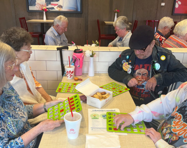 From that single player, the event now regularly draws around 40 participants, and the organizers have stocked up 49 bingo boards, hoping one day to fill every last seat and board. Held the second Monday of each month at 9 a.m., the event is open to anyone aged 60 and up to win prizes, and even Chick-fil-A patrons passing through can join in for a chance to win candy.