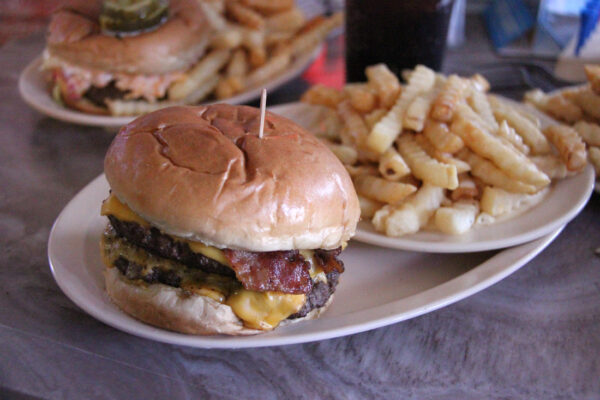 “Walking up to the door we could smell meat grease (in a good way),” a diner, Mel, posted in a review. “Just a good burger joint filled with locals.”