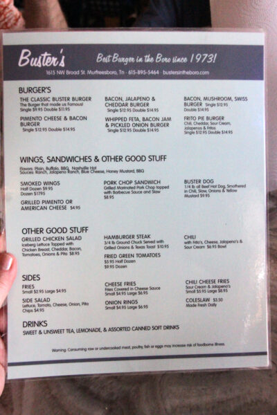 “If you’re not looking for it, you’ll completely drive past it. But I’m telling you, this is one place you don’t want to pass up,” according to Sarah, a Smyrna resident. “If you’re looking for a burger spot in Murfreesboro, definitely give Buster’s Place a try!”